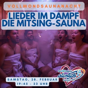 28.2. = „Lieder im Dampf – (Mitsing-Sauna)“-Vollmond-Saunanacht – mit langer Öffnungszeit bis 23 Uhr